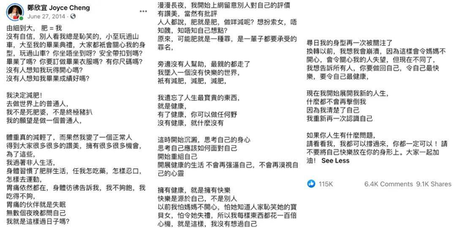 十个月后,郑欣宜减掉了一半体重,瘦到了130斤,成为了励志的代表,拿下了减肥公司的代言,和林宝麟组合发了歌曲。